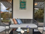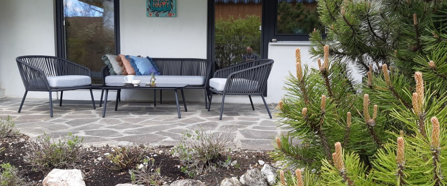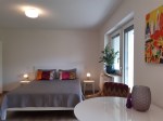 Apartment für 1-2 Personen. Offener Wohn- und Schlafbereich mit Küchenzeile. Bad mit Dusche/WC. Terrasse.